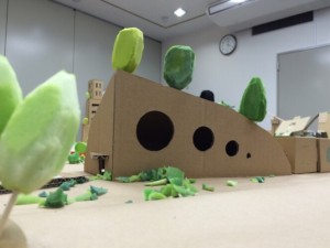 このイベントで子供達が作るダンボールハウスの脇を飾る模型を、